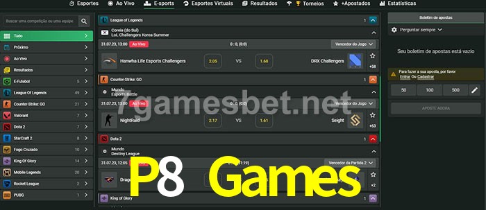 A aposta P8 Games oferece aos jogadores a experiência mais conveniente de apostas em eSports!
